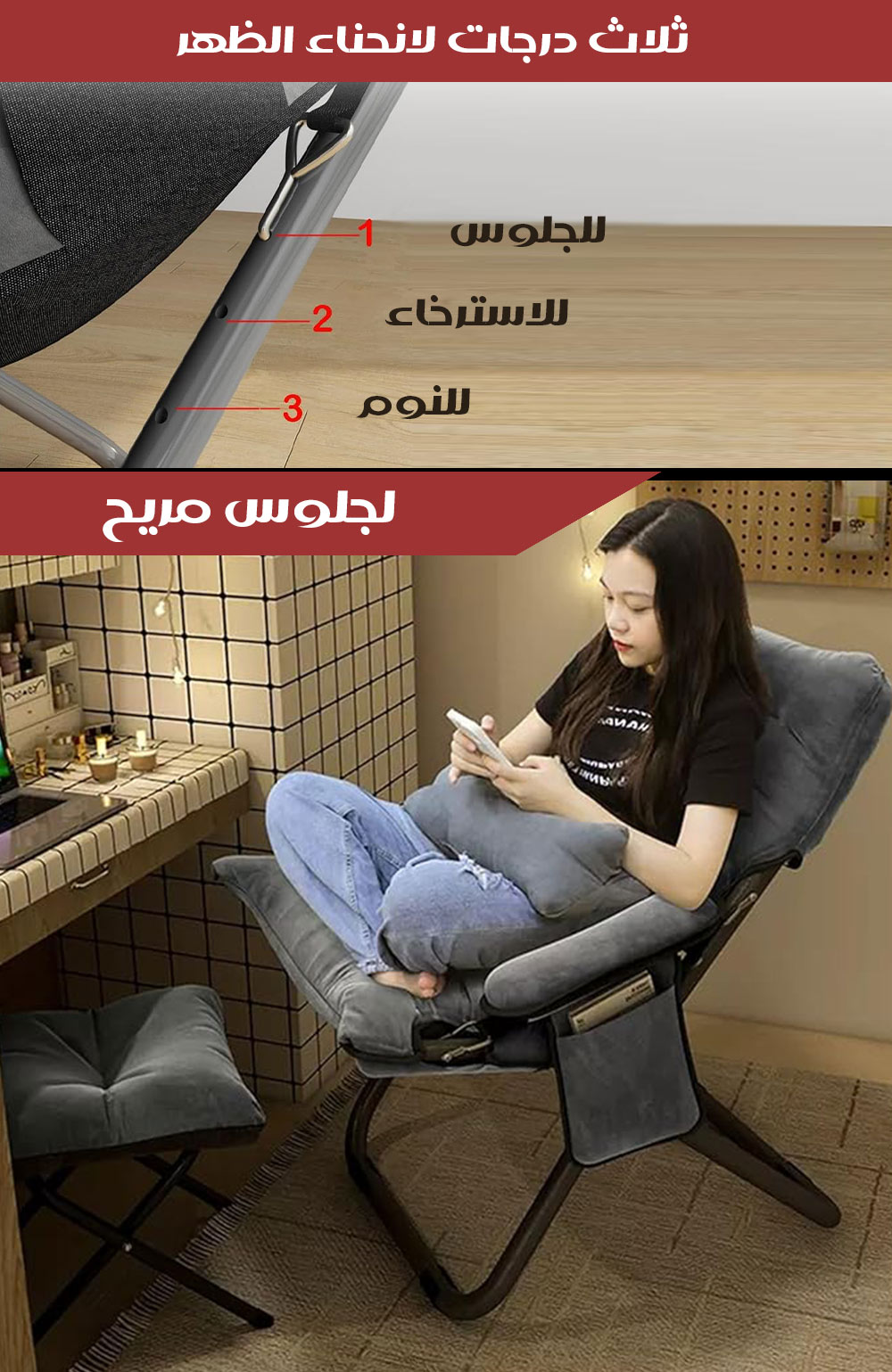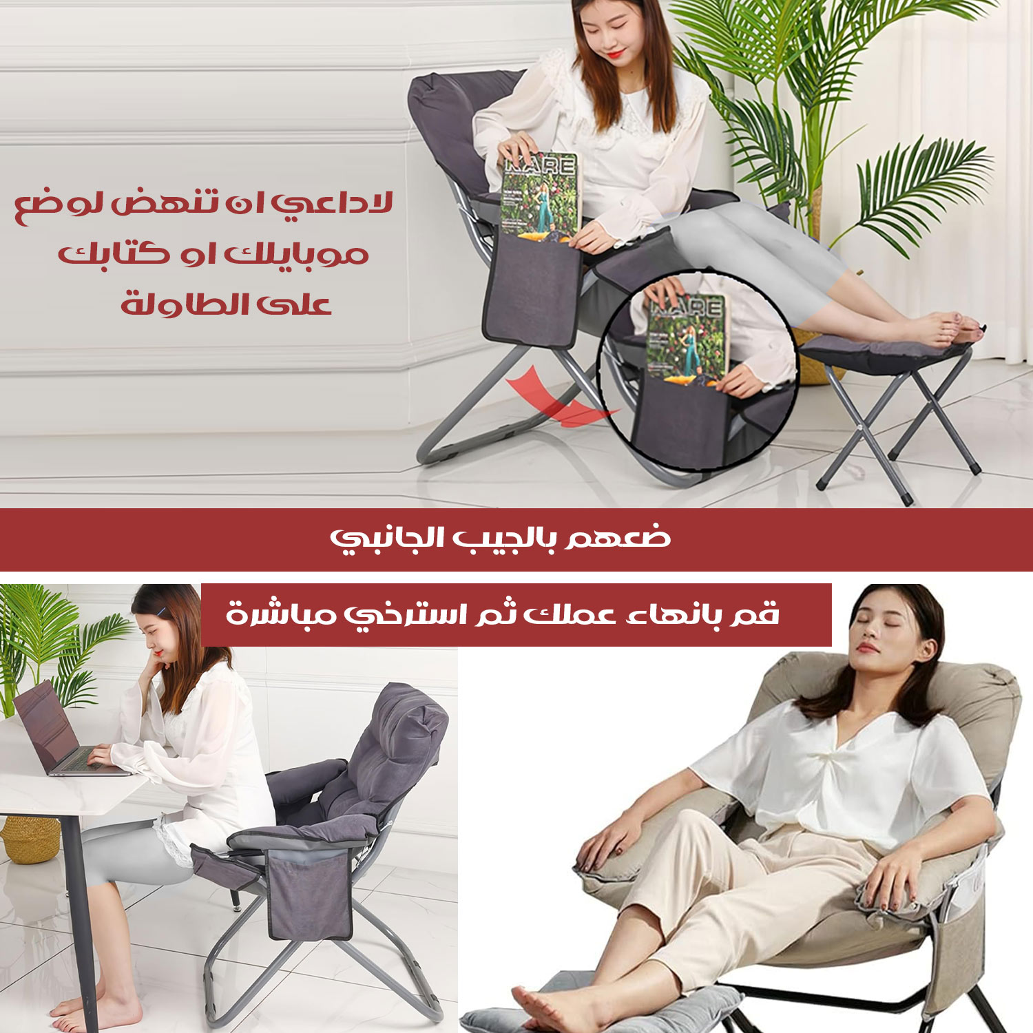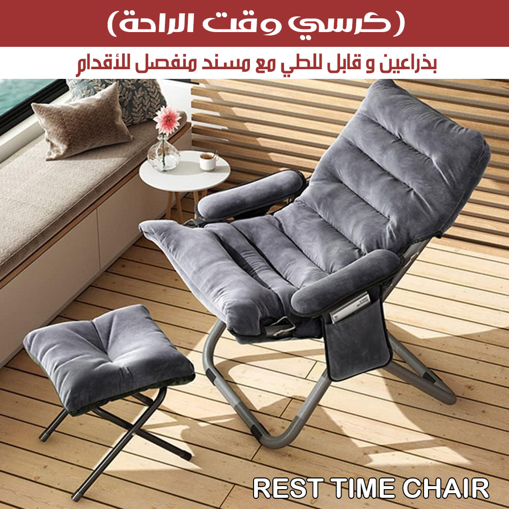 ( كرسي وقت الراحة) بذراعين و قابل للطي مع مسند منفصل للأقدامREST TIME CHAIR