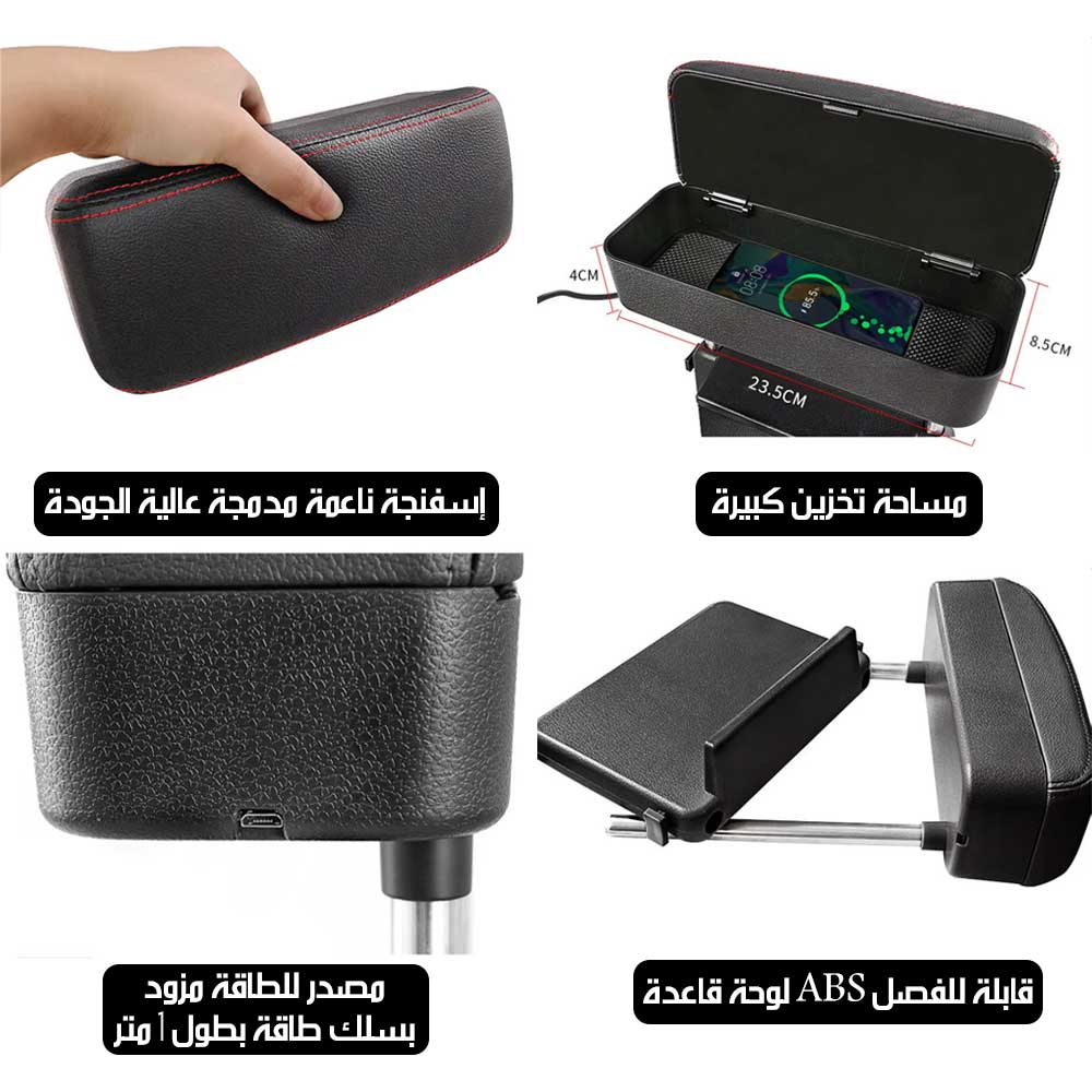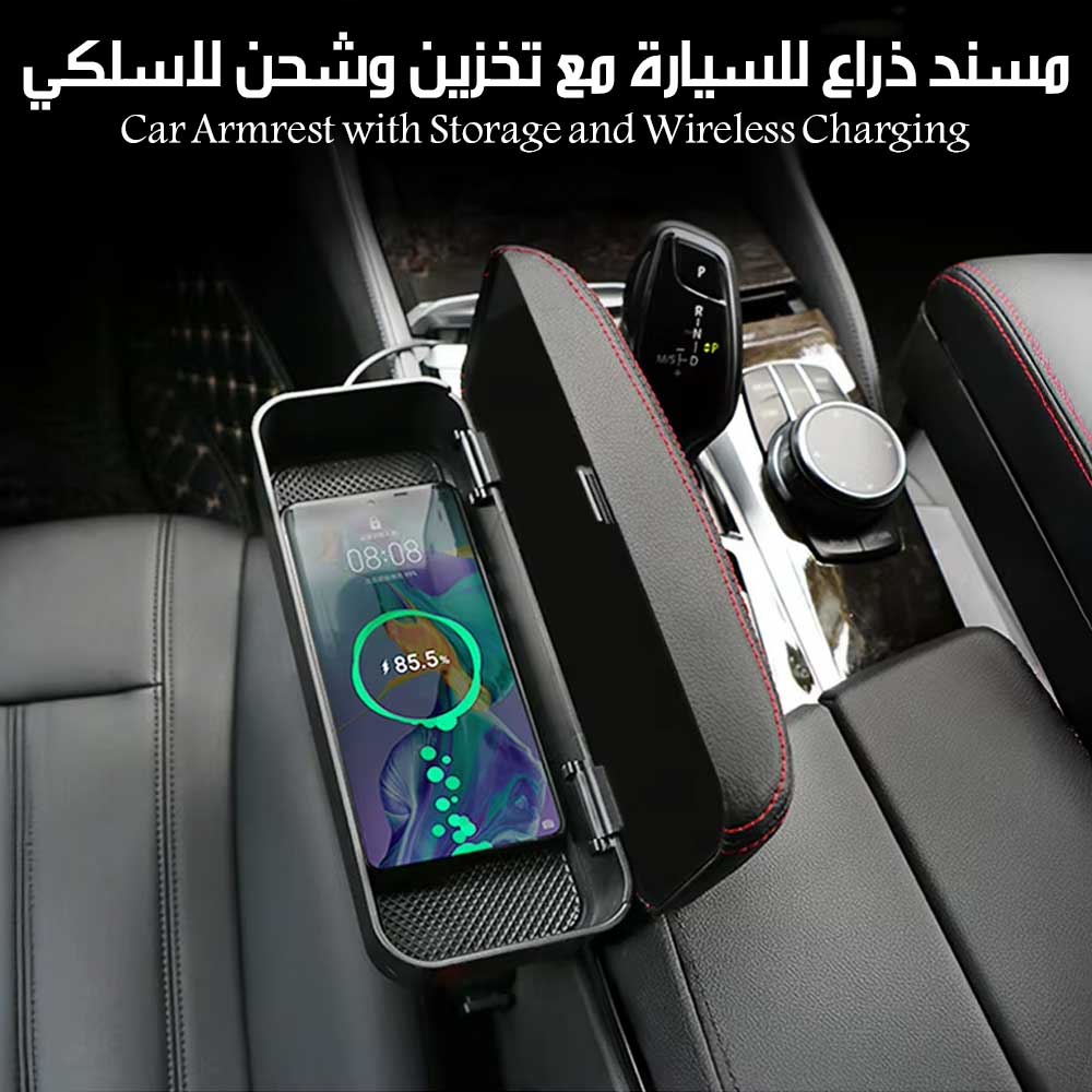 مسند ذراع للسيارة مع تخزين وشحن لاسلكي Car Armrest With Storage And Wireless Charging