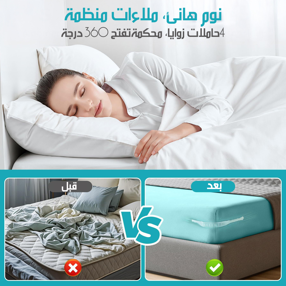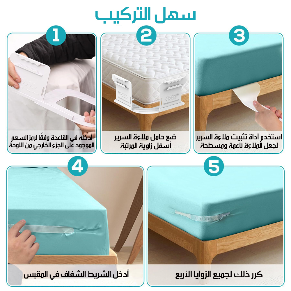 مشابك ملاءات السرير بشرائط مرنة لتثبيت الزوايا بإحكام SHEET HOLDER Bed Sheet Clips With Elastic Straps For Secure Corner Hold