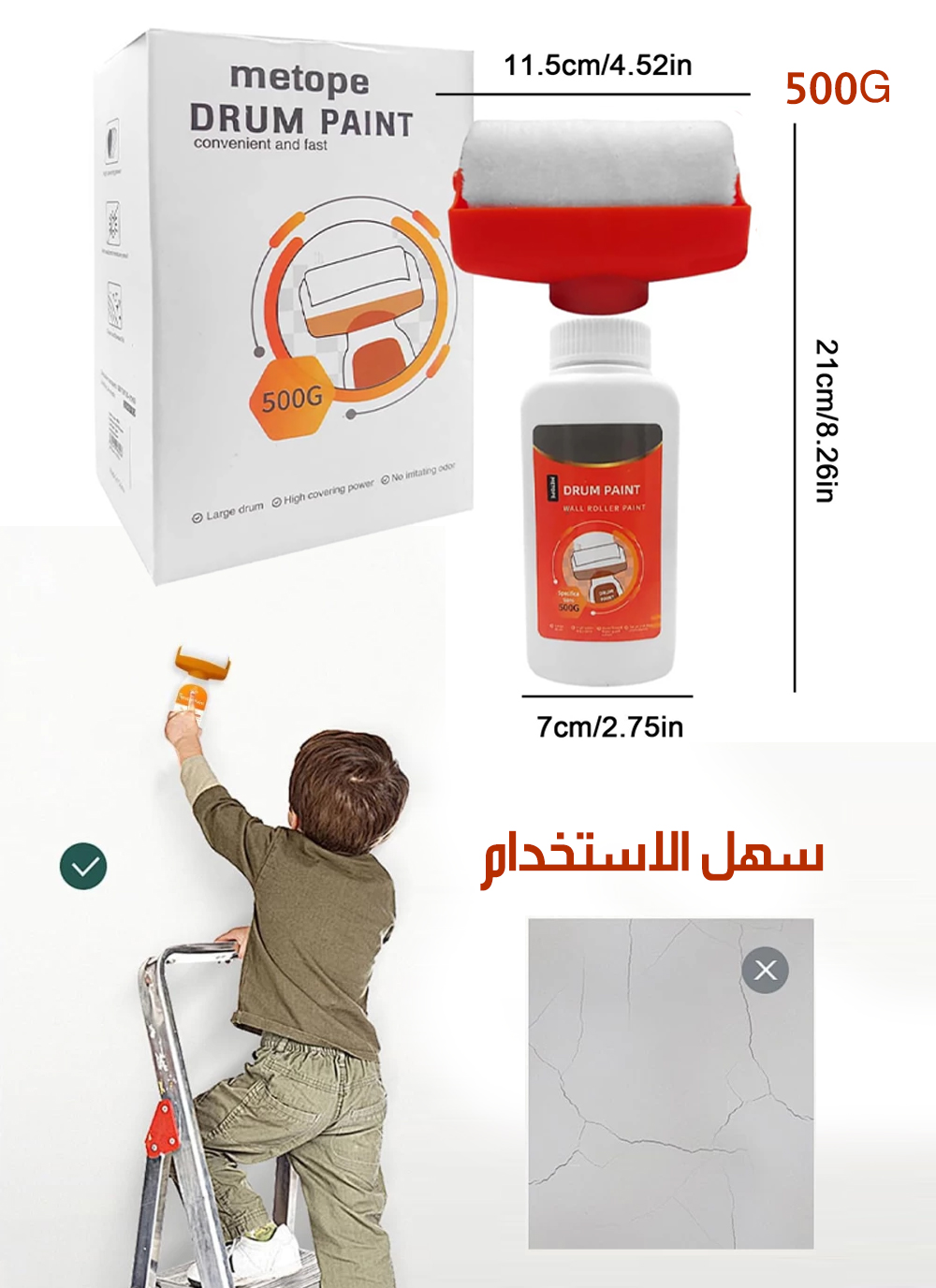 طلاء لاتكس أسطوانة دوّارة لاصلاح الجدرانmetope DRUM PAINT Convenient And Fast