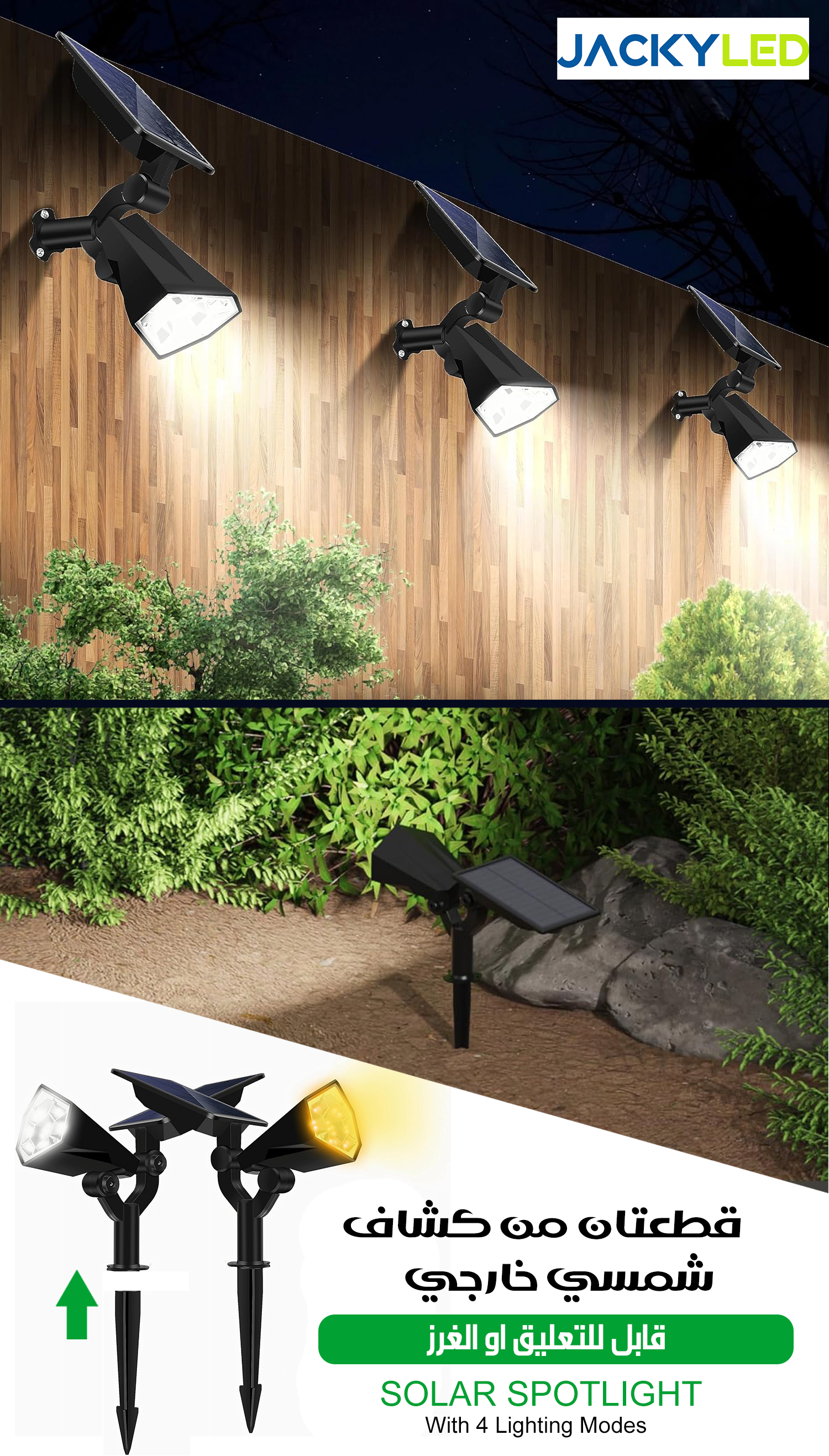 قطعتان من كشاف شمسي خارجي قابل للتعليق او الغرز JACKYLED SOLAR SPOTLIGHT With 4 Lighting Modes