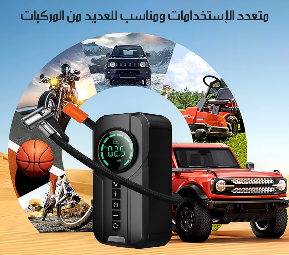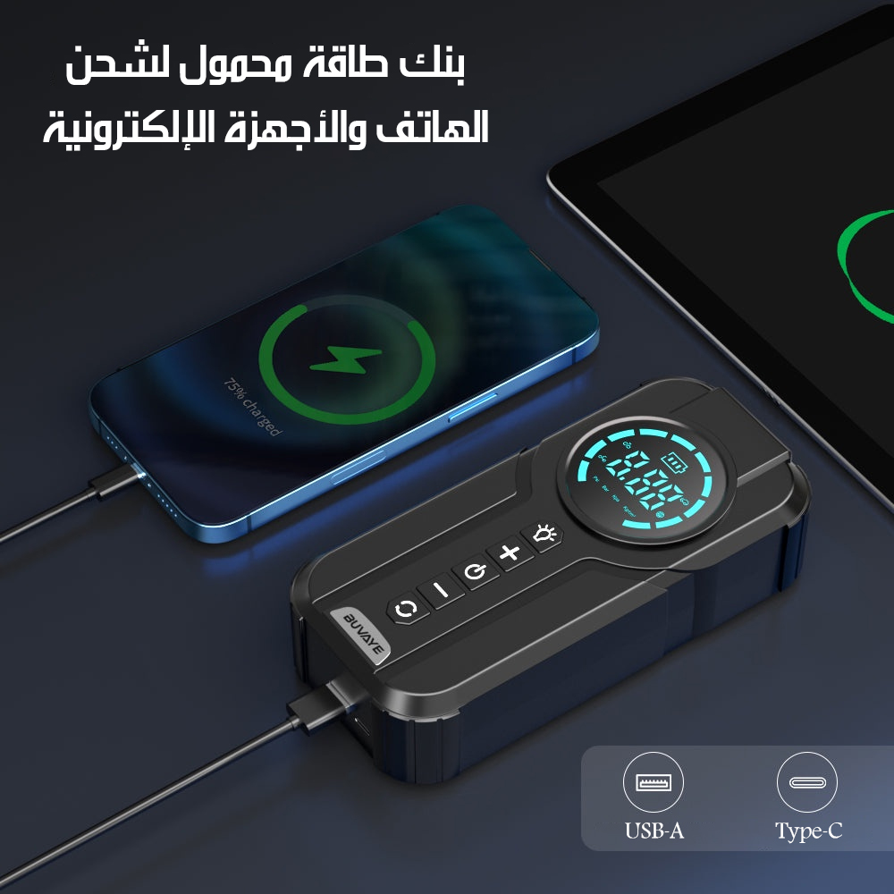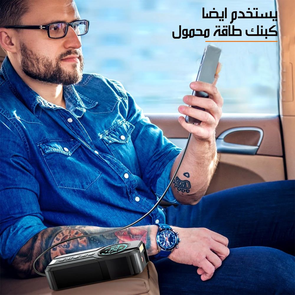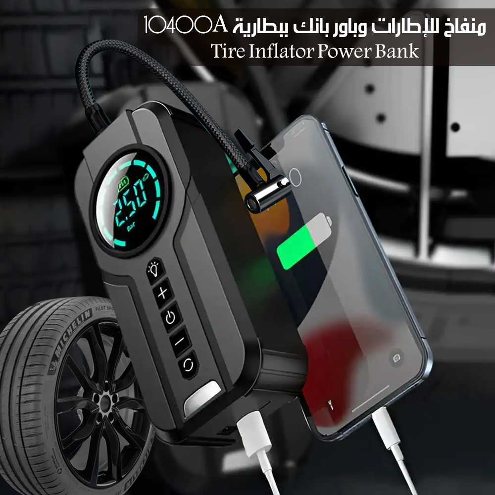 منفاخ للإطارات وباور بانك ببطارية 10400A Tire Inflator Power Bank