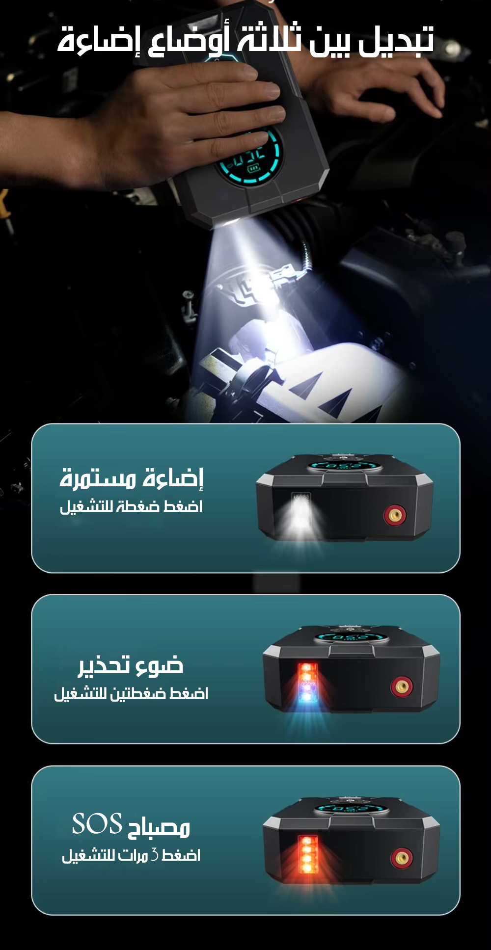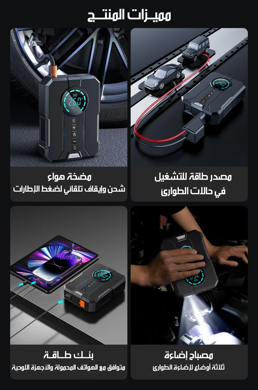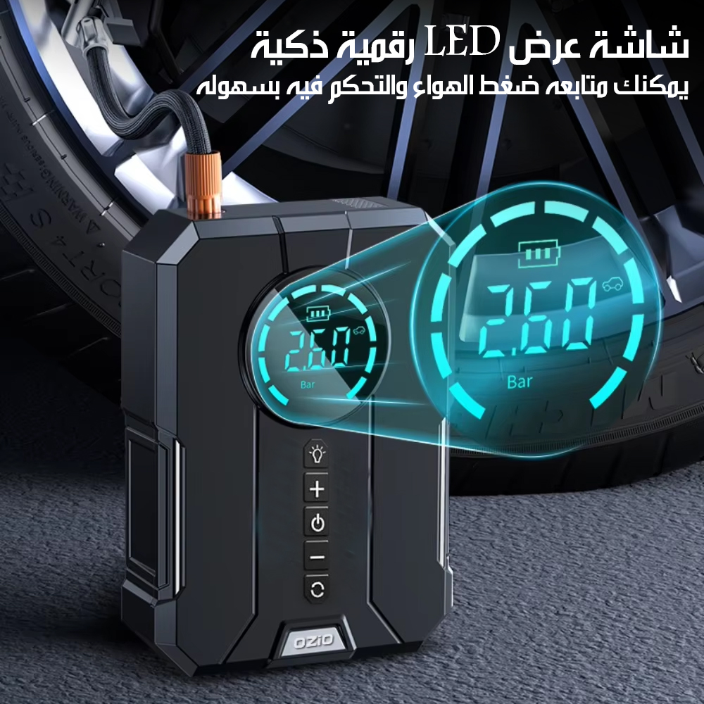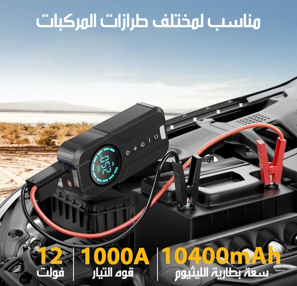 منفاخ للإطارات وباور بانك ببطارية 10400A Tire Inflator Power Bank