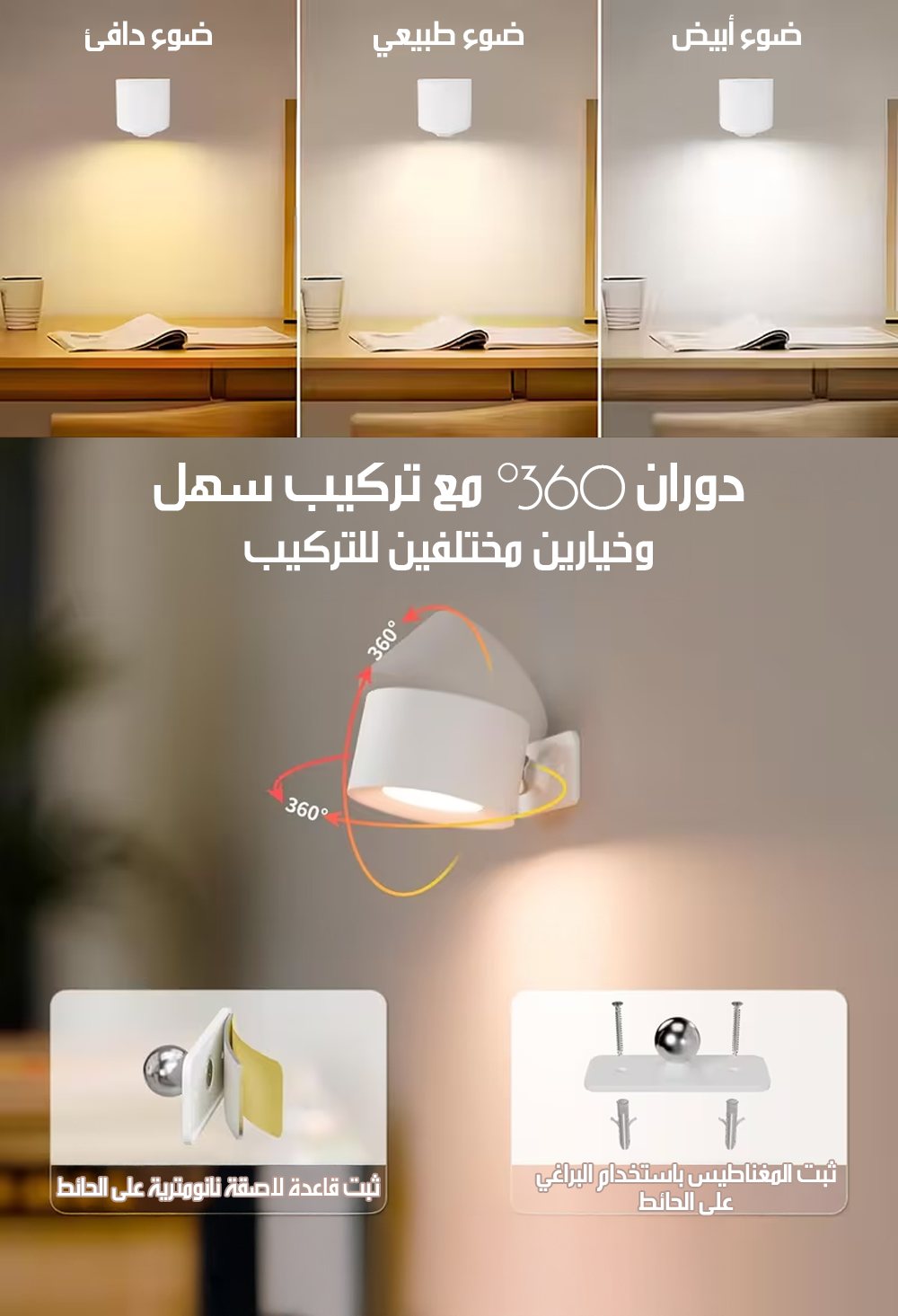 مصباح حائط لاسلكي قابل لإعاده الشحن Magnetic LED Wall Lamp