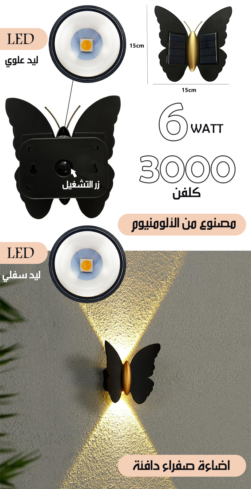 ليد جداري شمسي خارجي على شكل فراشة SOLAR LED GARDEN LIGHT
