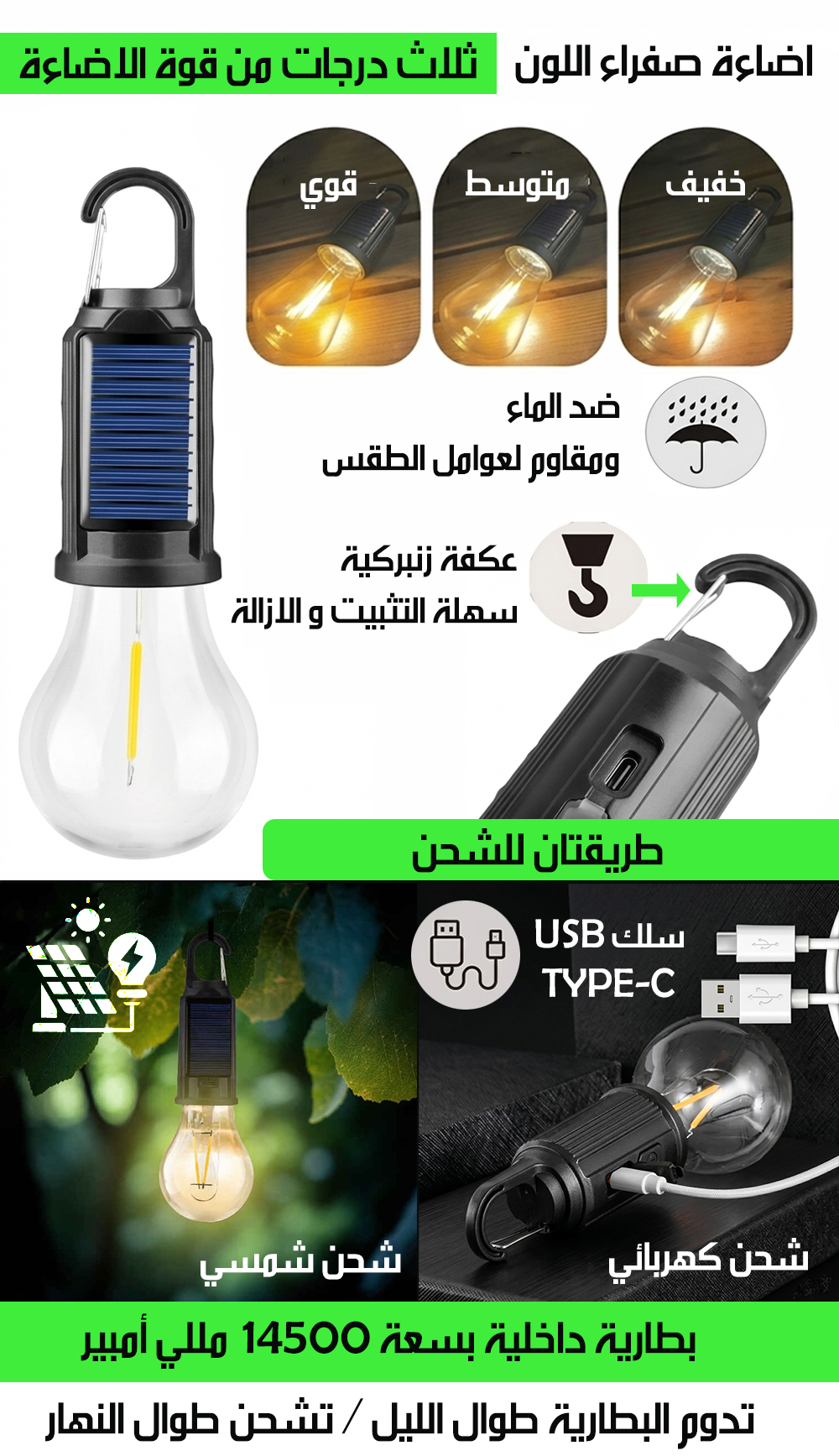 مصباح التخييم بشحن شمسي و كهربائي CAMPING LAMP