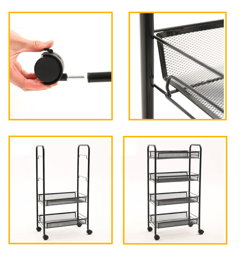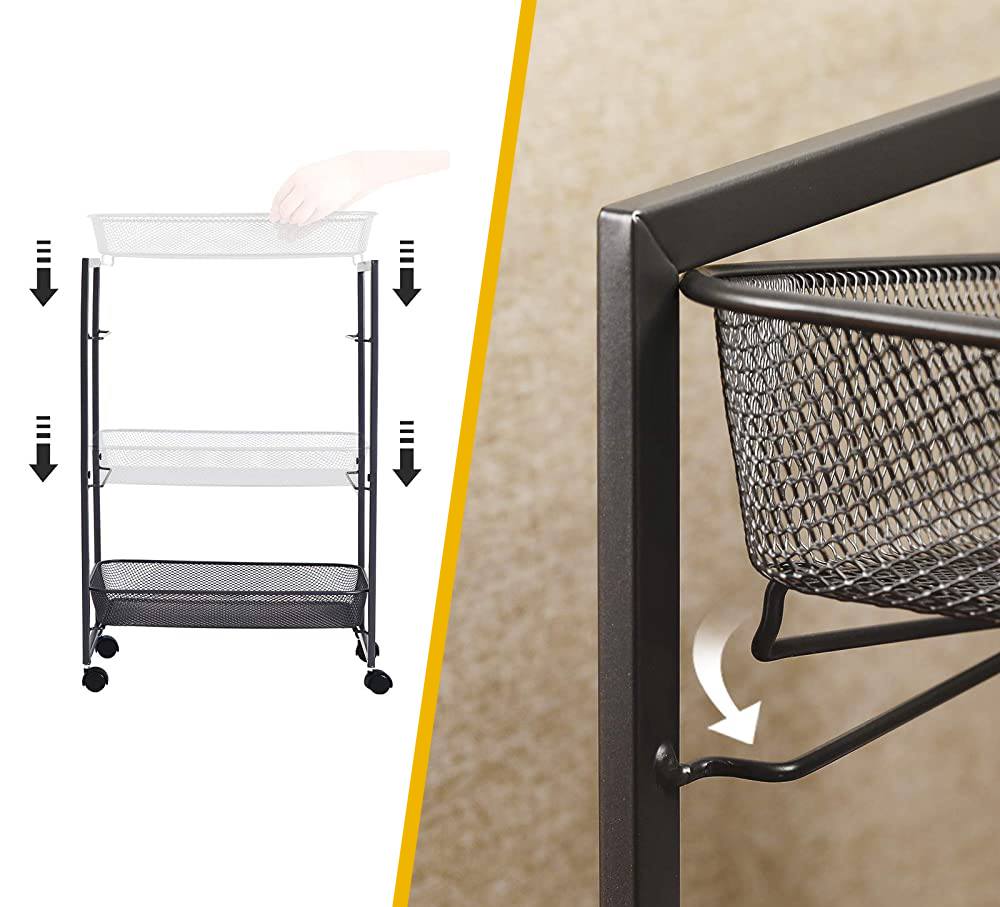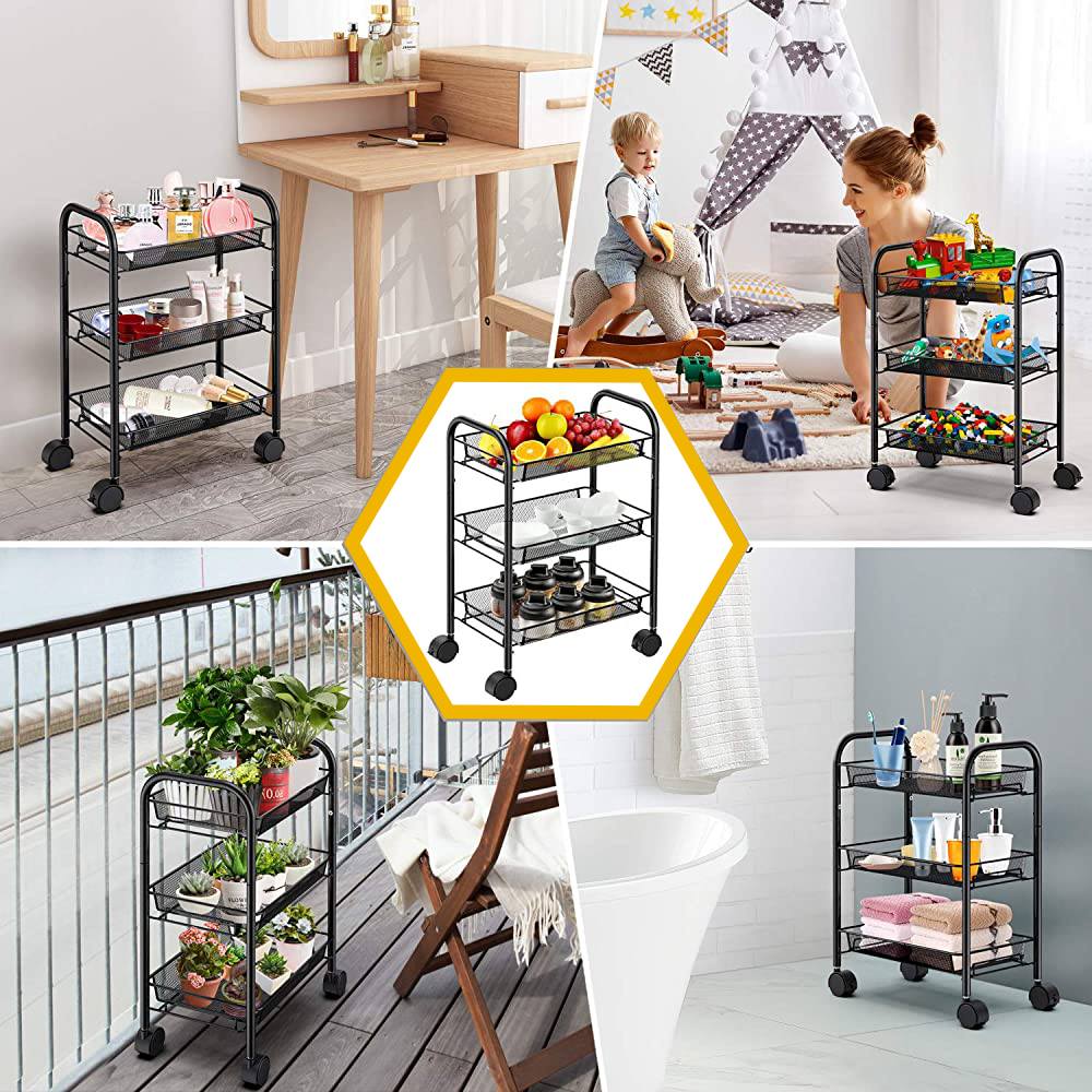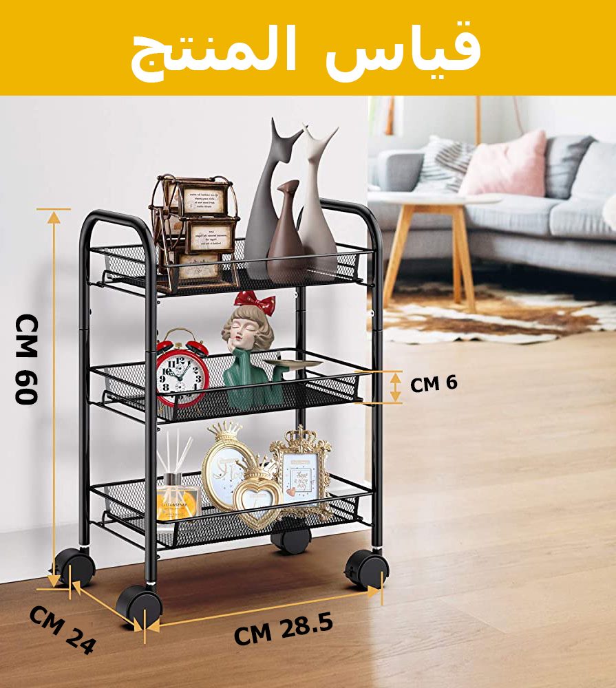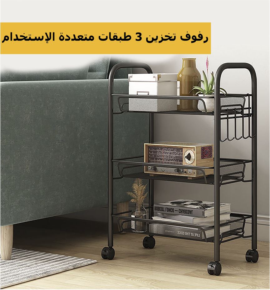 مؤرشف رفوف تخزين متعددة الإستخدام 3 طبقات Basket Stand Kitchen Rolling Storage Trolley