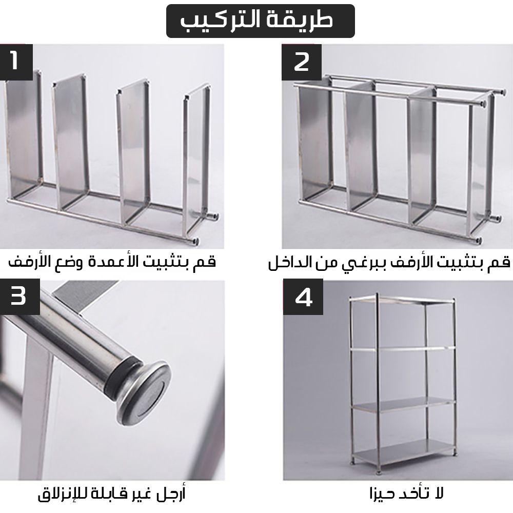 رفوف تخزين ستانليس متعدد الإستخدام 4 أرفف Multipurpose Stainless Steel Storage Rack
