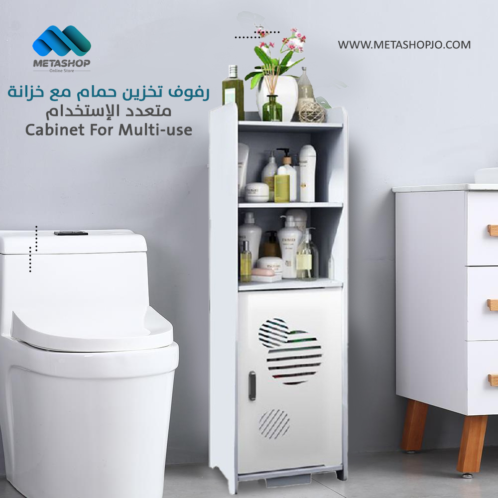 رفوف تخزين حمام مع خزانة متعدد الإستخدام Cabinet For Multi-use