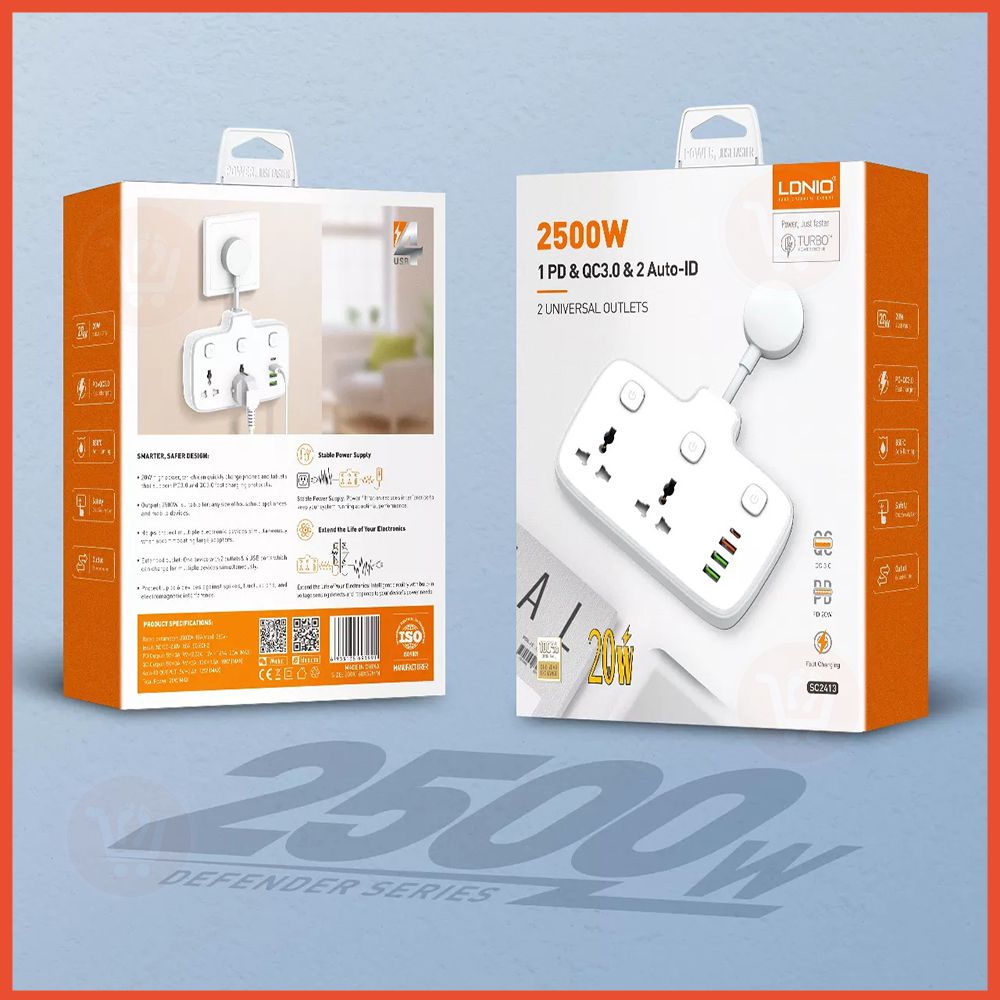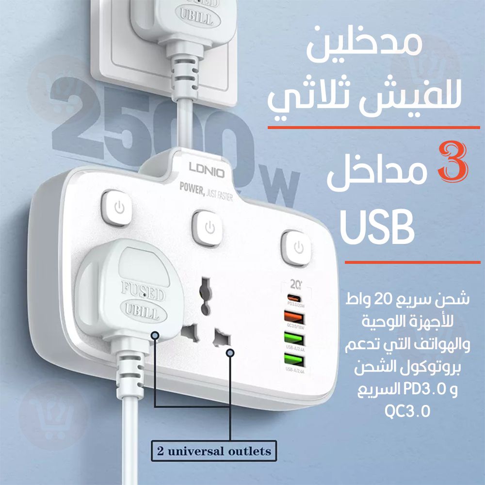 مؤرشف وصلة كهربائية بمفاتيح تشغيل منفصلة Ldnio Universal Power Strip 2500W QC3.0 SC2413