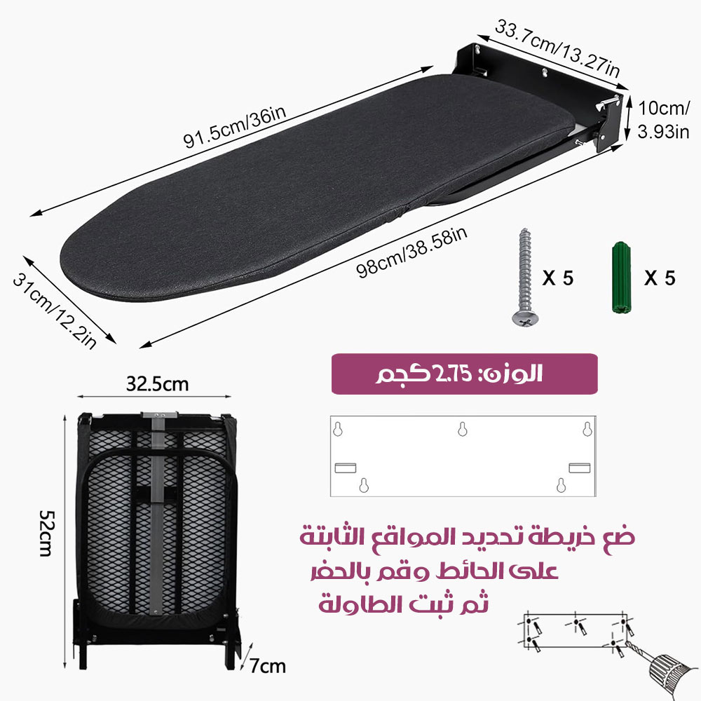 طاولة كوي حائطية قابلة للطي