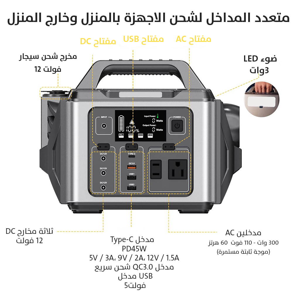 مولد طاقة محمول 300 وات مع بطارية ليثيوم احتياطية Portable Power Generator 300W With Lithium Battery