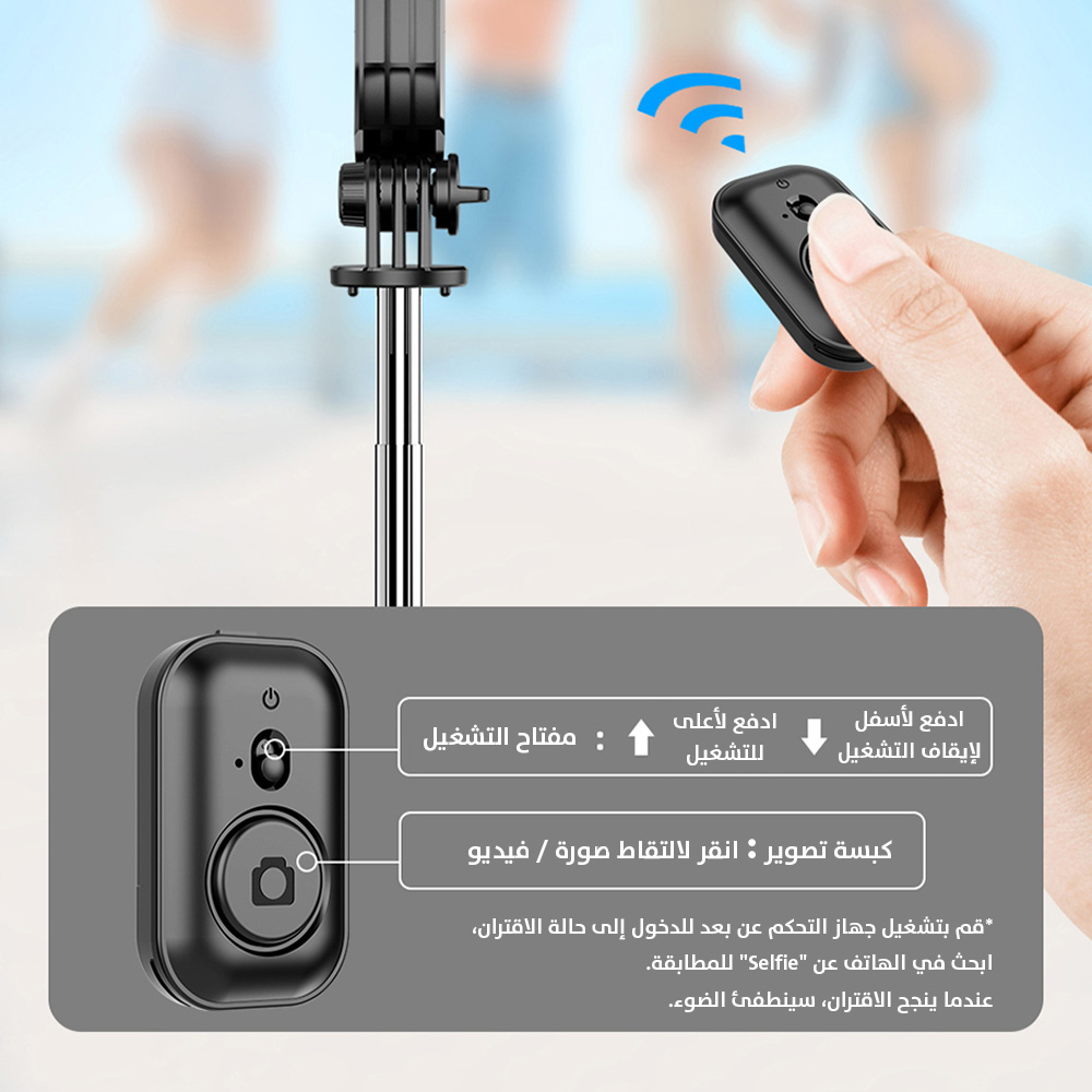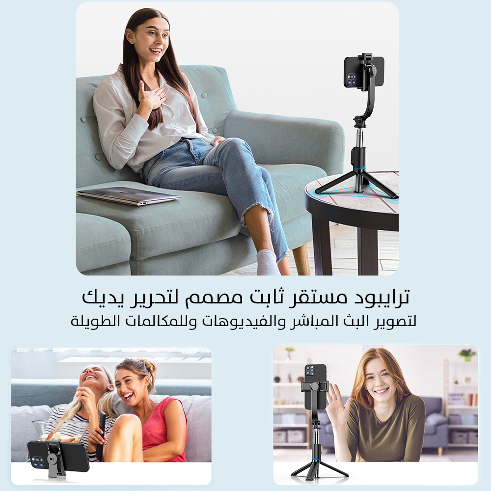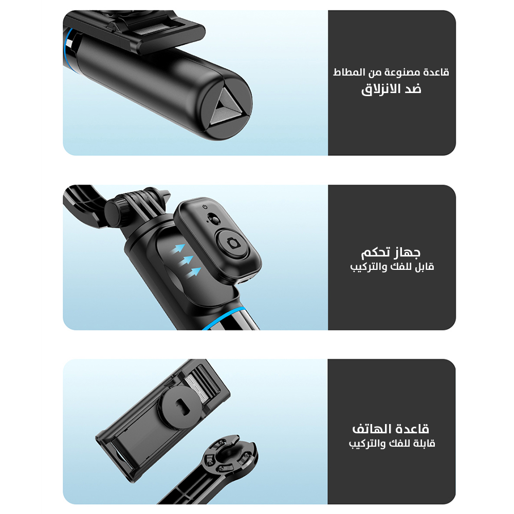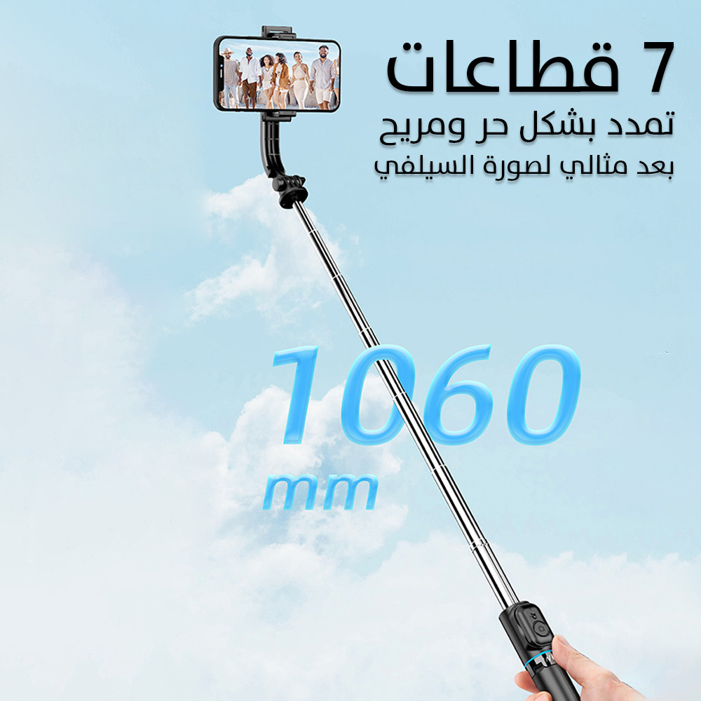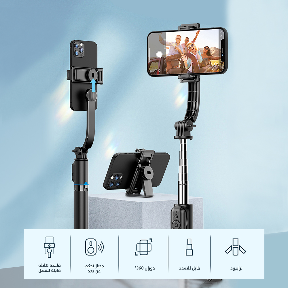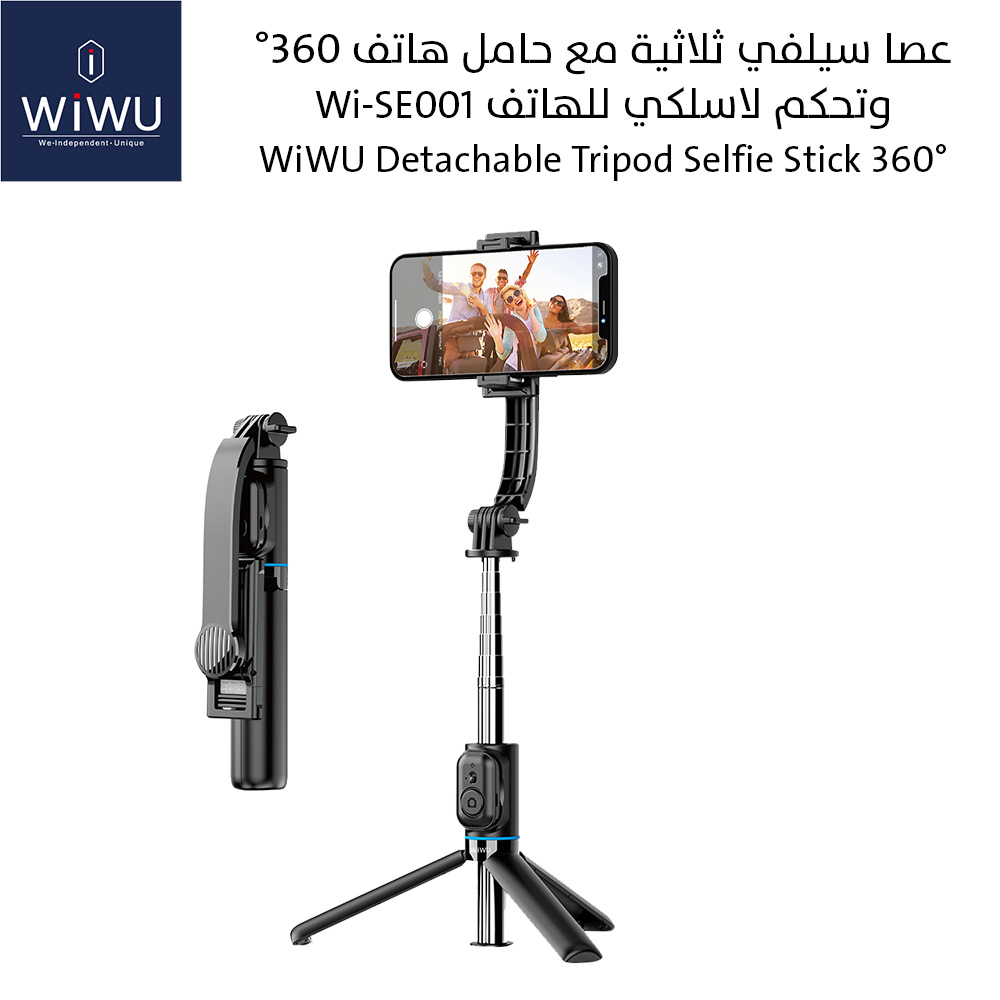عصا سيلفي ثلاثية مع حامل هاتف 360° وتحكم لاسلكي للهاتف Wi-SE001 WiWU Detachable Tripod Selfie Stick 360°