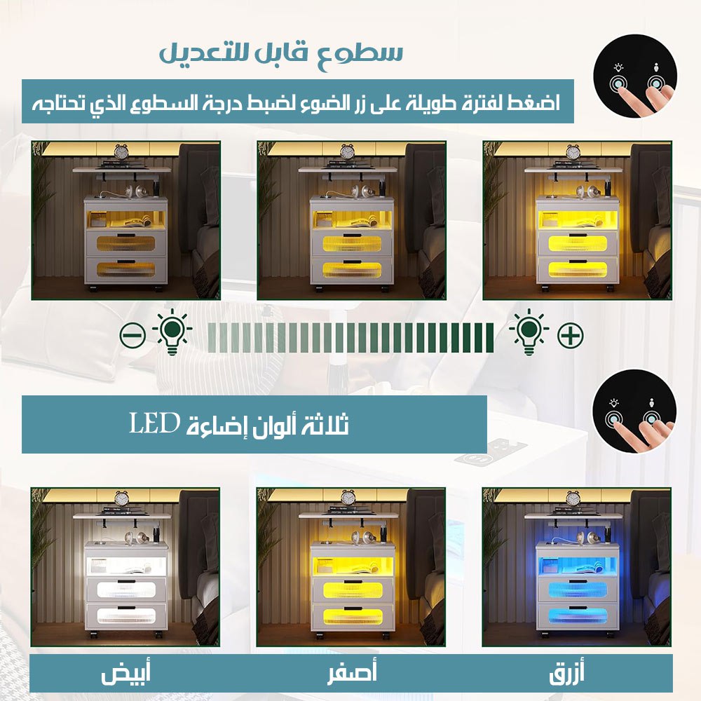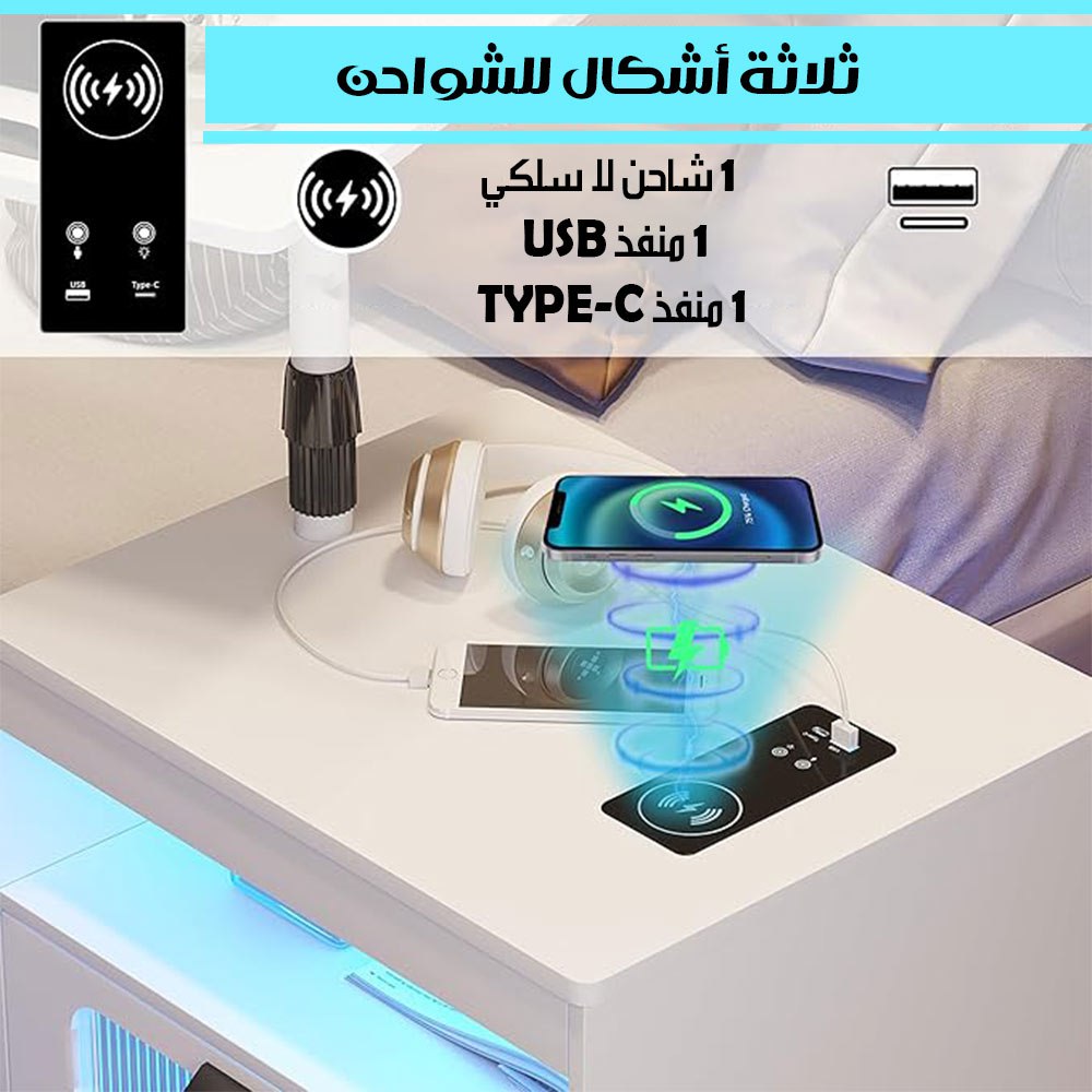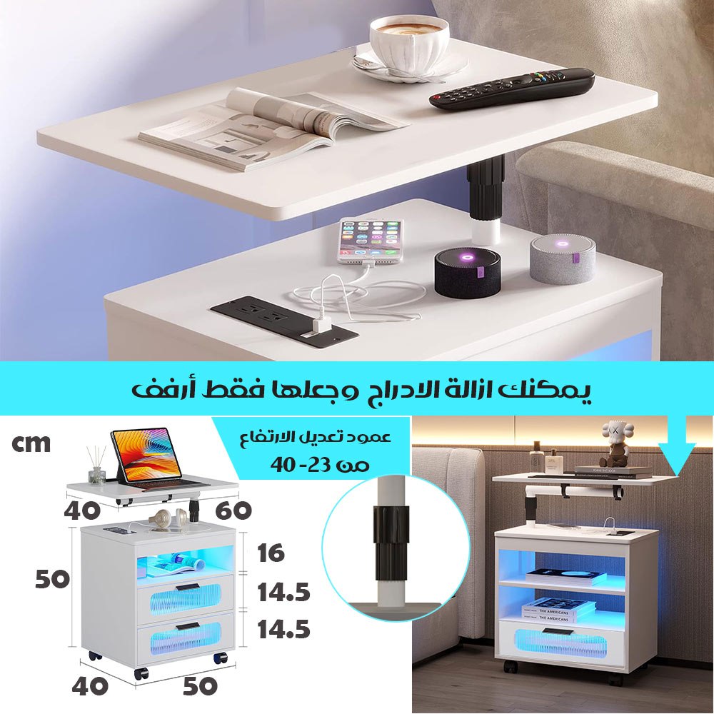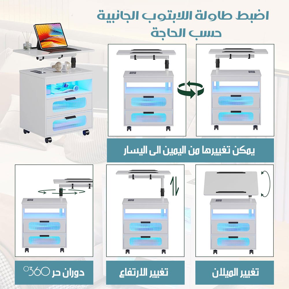 طاولة جانبية بضوء حساس وقاعدة لابتوب متحركة وشاحن ذكي