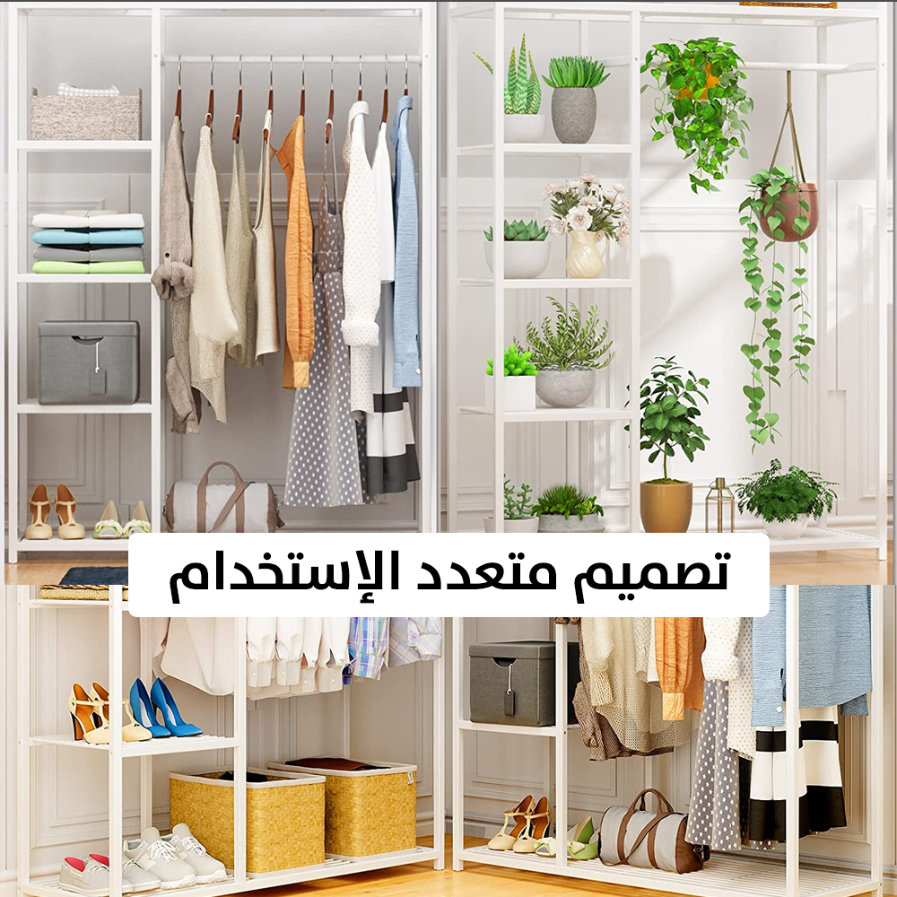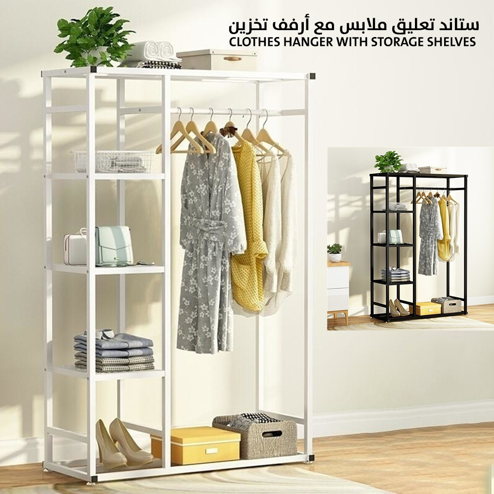 ستاند تعليق ملابس مع أرفف تخزين Clothes Hanger With 2 Layers Shelves