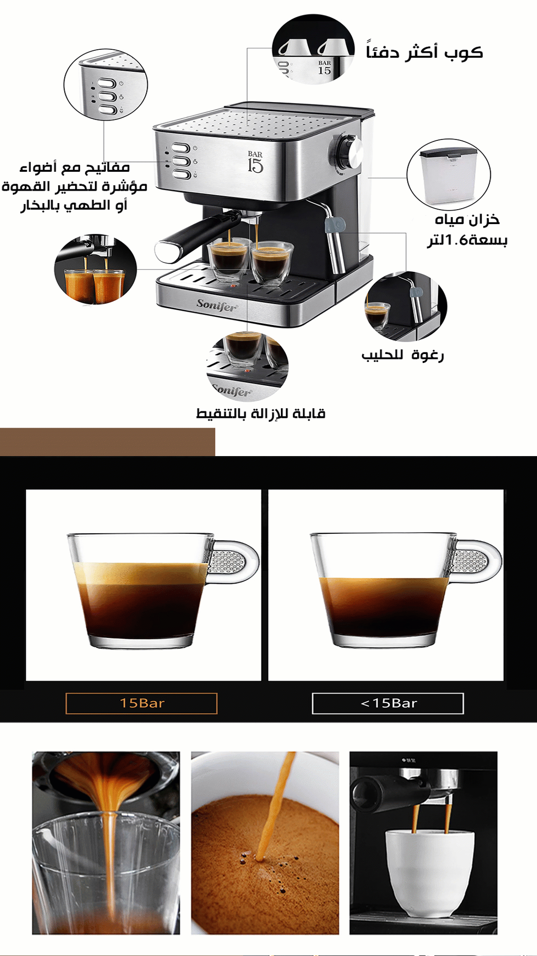 ماكينة قهوة أسبريسو المنزلية Sonifer Espresso Machine SF-3535