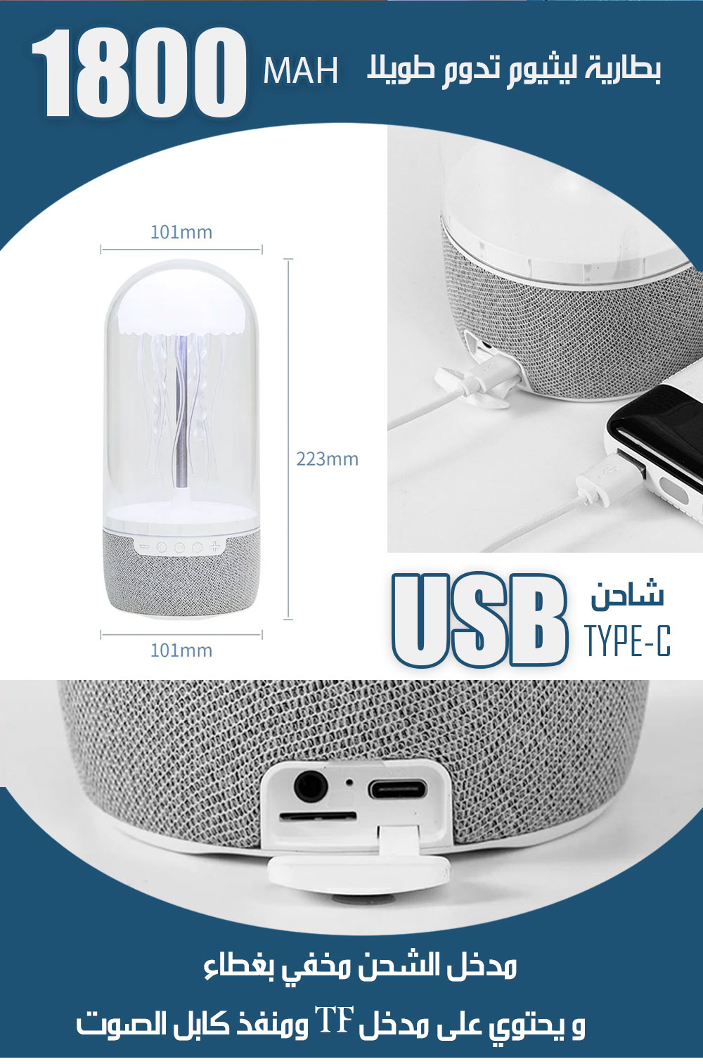 قنديل البحر الراقص سبيكر بلوتوث بإضاءة متغيرة شحنCOLORFUL JELLYFISH LAMP BLUETOOTH SPEAKER