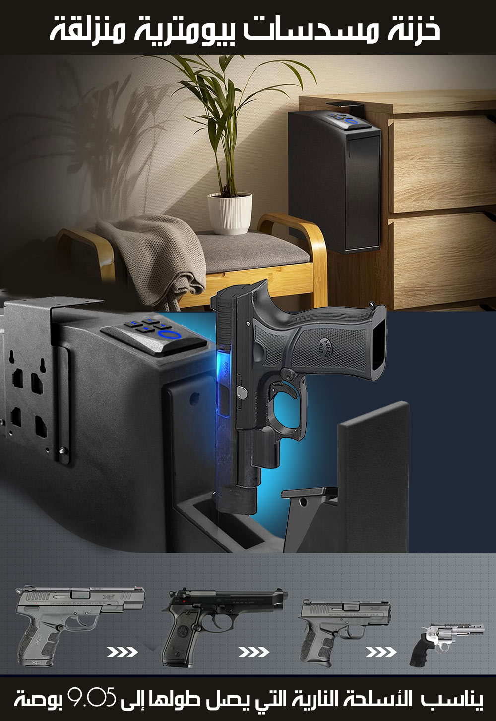 خزنة مسدسات بيومترية منزلقة