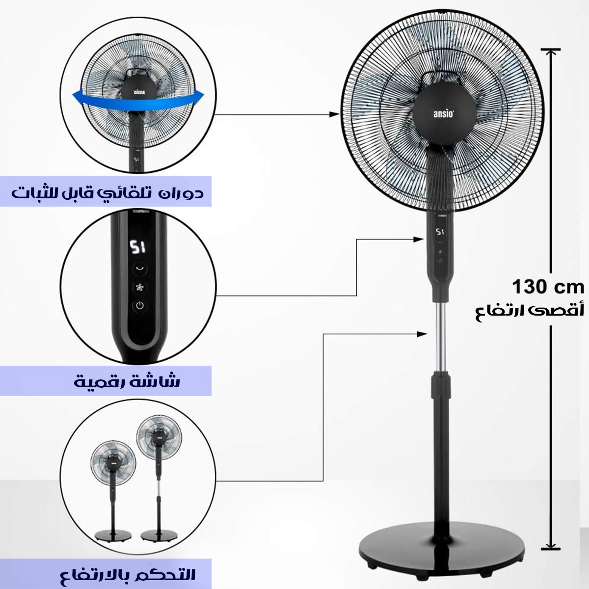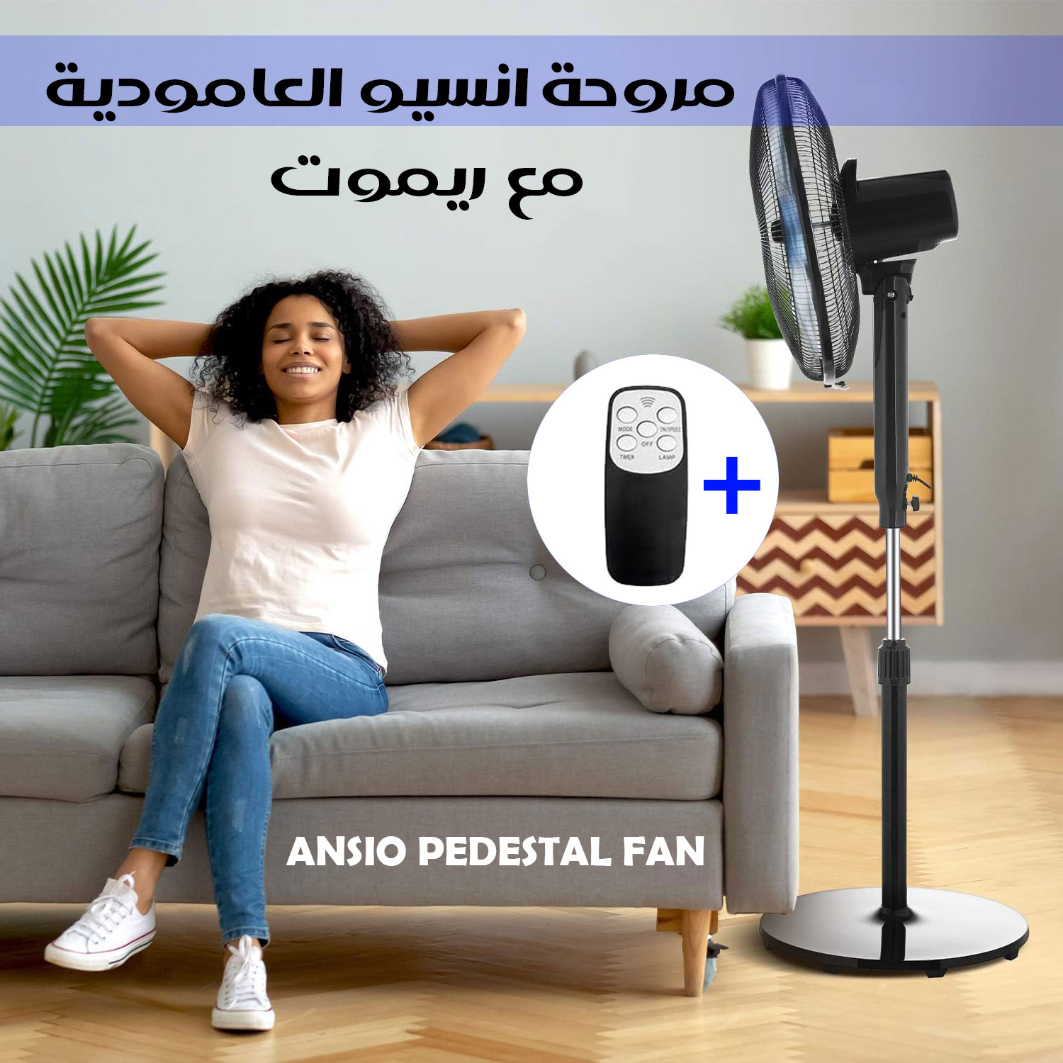 مروحة انسيو العامودية مع ريموت ANSIO Pedestal Fan