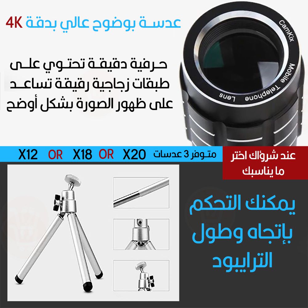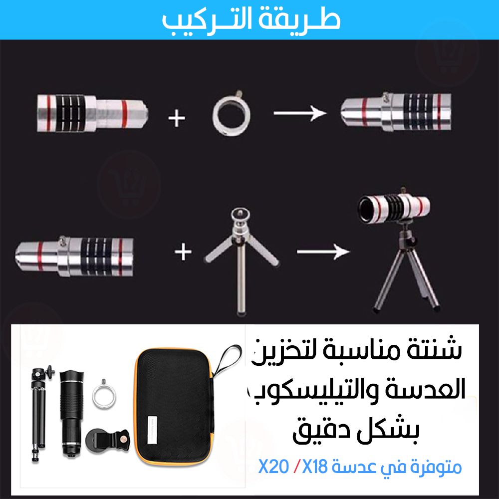 6058 تيليسكوب تكبير لكاميرا الهاتف مع قاعدة تثبيت Telescope Zoom Phone Camerax20/x18/x12