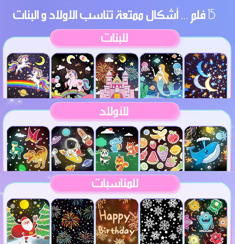 بروحكتر برسومات جدارية مضيئة ملونة للاولاد و البنات Rotating Cabin Projector Lamp